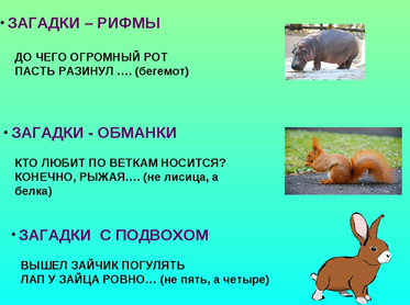 отгадывания. Наиболее обширная группа – про животных. Такие тексты помогут не