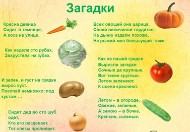 узнает новые факты о знакомых овощах. Выбрать лучше всего несложные варианты, к