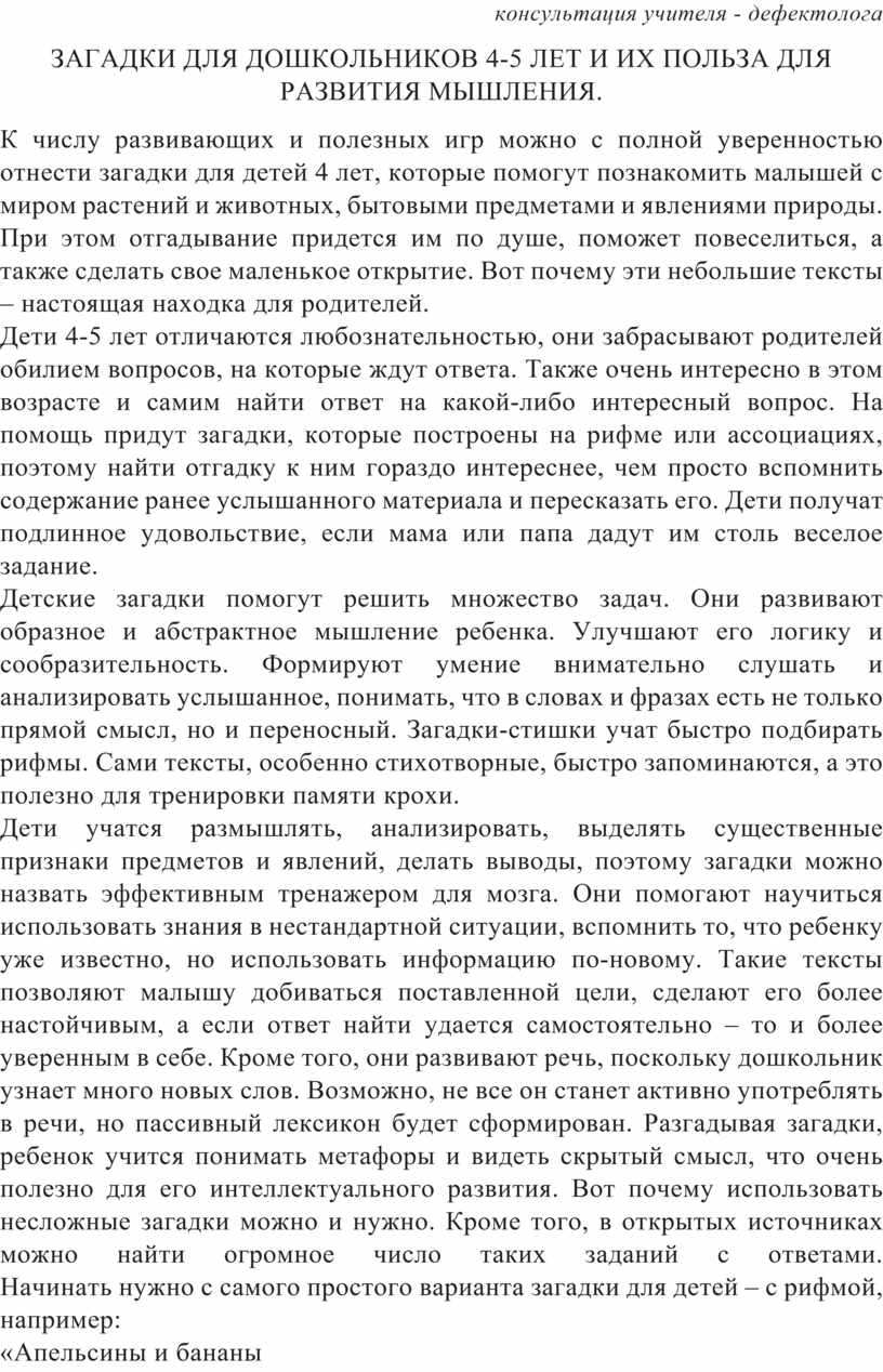 ЗАГАДКИ ДЛЯ ДОШКОЛЬНИКОВ 4-5 ЛЕТ И ИХ ПОЛЬЗА ДЛЯ РАЗВИТИЯ МЫШЛЕНИЯ.