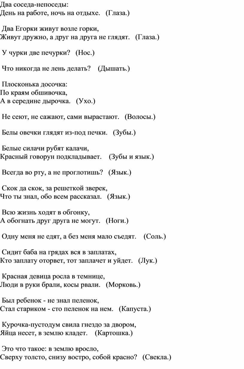 Загадки о здоровом образе жизни для детей дошкольного возраста с ответами
