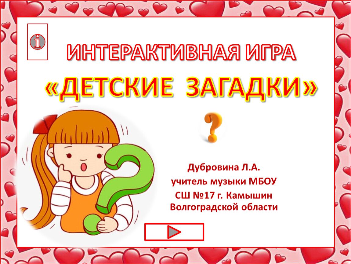 ИНТЕРАКТИВНАЯ ИГРА«ДЕТСКИЕ ЗАГАДКИ»
