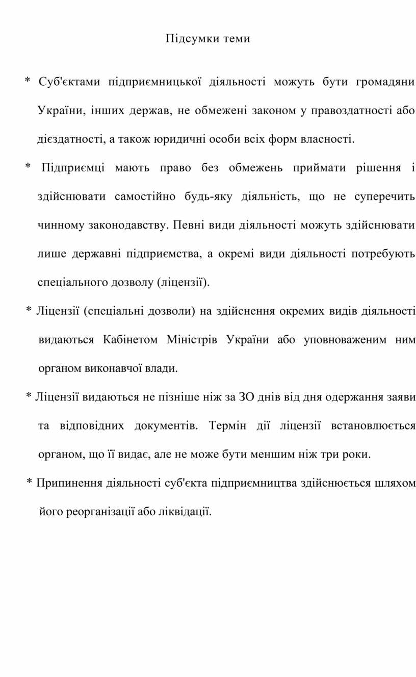 * Суб'єктами підприємницької діяльності можуть бути громадяни України, інших держав, не обмежені законом у правоздатності або дієздатності, а також юридичні особи всіх форм власності.