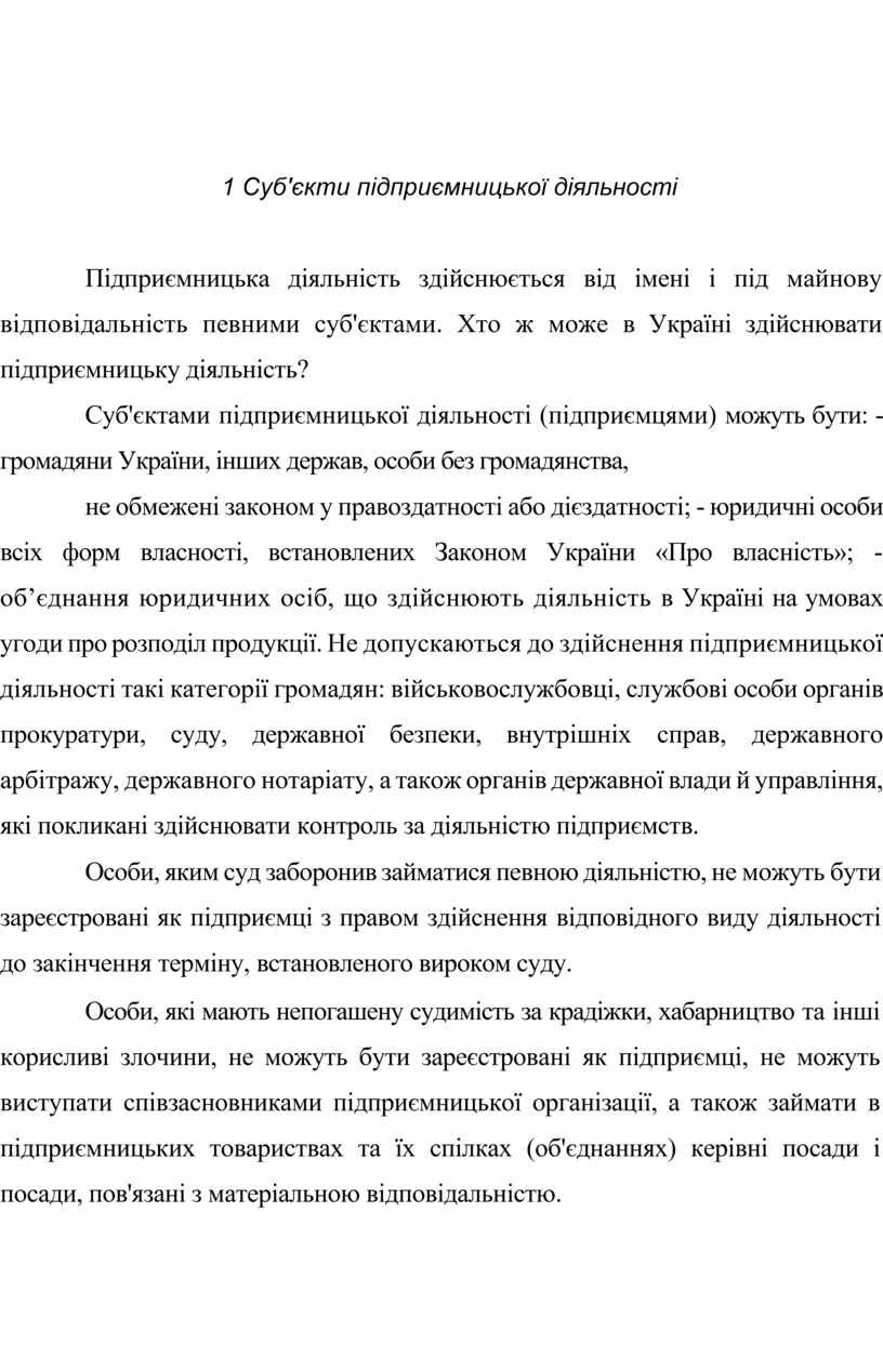 1. Хто в Україні може бути суб'єктом підприємницької діяльності?