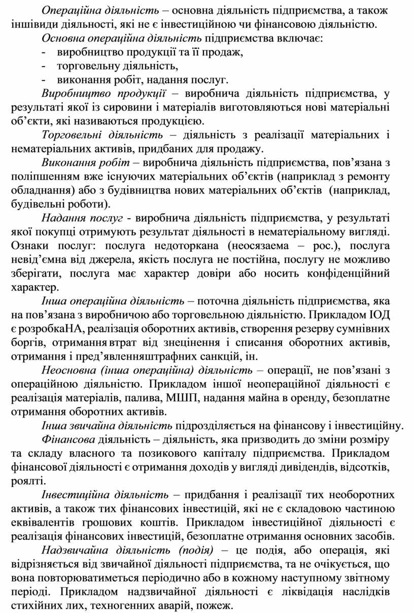 Операційна діяльність – основна діяльність підприємства, а також інші види діяльності, які не є інвестиційною чи фінансовою діяльністю.