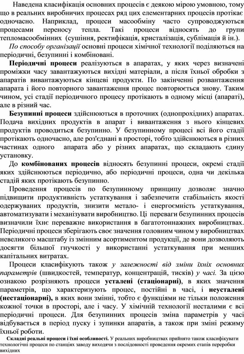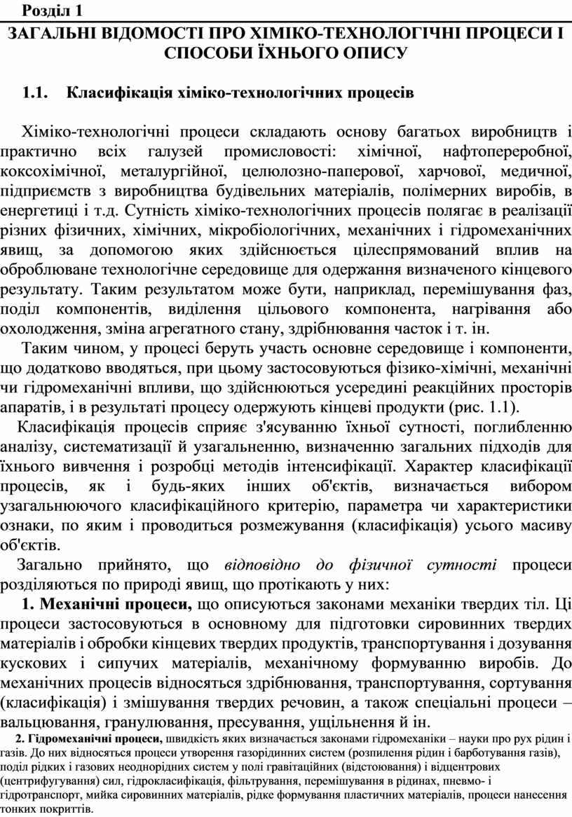 ЗАГАЛЬНІ ВІДОМОСТІ ПРО ХІМІКО-ТЕХНОЛОГІЧНІ ПРОЦЕСИ І СПОСОБИ ЇХНЬОГО ОПИСУ