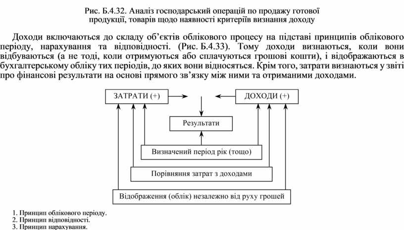 Застосування принципів нарахування та відповідності під час визнання доходу як елемента обліку про фінансові результати відбувається таким чином (рис. Б.4.34).