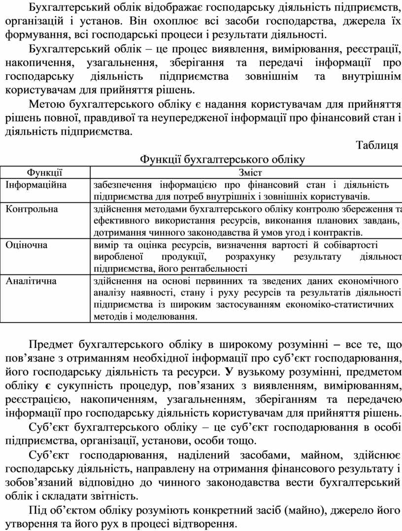 Бухгалтерський облік відображає господарську діяльність підприємств, організацій і установ. Він охоплює всі засоби господарства, джерела їх формування, всі господарські процеси і результати діяльності.
