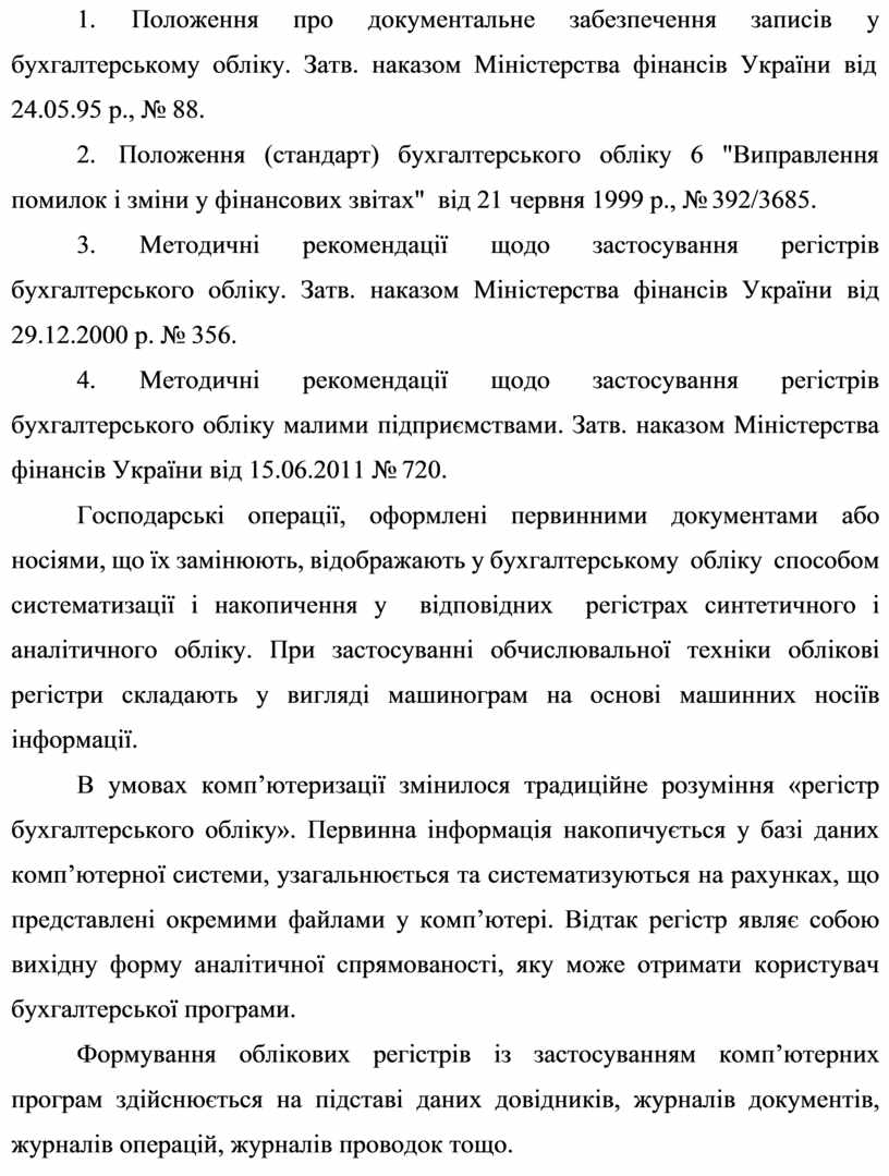 6. Методичні рекомендації щодо застосування регістрів бухгалтерського обліку. Затв. наказом Міністерства фінансів України від 29.12.2000 р. № 356.