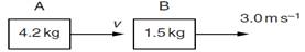 1. (а) (і) Объясните закон сохранение импульса. …………………………………………………………………………………………………………………………………………………………………………………………………………………………………………...[2] (іі) Назовите разницу между упругим и неупругим соударениями. ..................................................................................................................................................................................................................[1] (b) (і) На рисунке 1 тело А массой 4,2 кг движется со скоростью 3,6 м/с. Навстречу ему движется тело В массой 1,5 кг со скоростью 1,2 м/с.