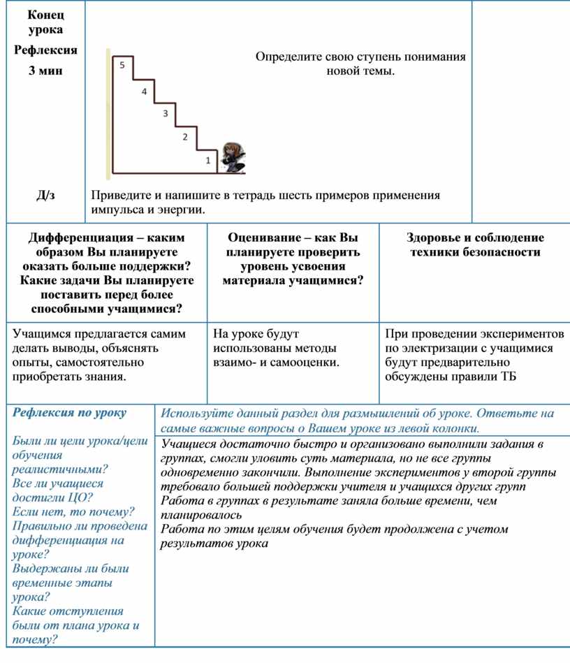 Используйте данный раздел для размышлений об уроке. Ответьте на самые важные вопросы о Вашем уроке из левой колонки. |