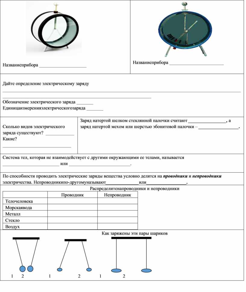 Электроскоп – это прибор для обнаружения электризации тел. По способности проводить электрические заряды вещества условно делятся на проводники и непроводники электричества. К непроводникам электрических зарядов относятся фарфор, стекло, эбонит, плексиглас, оргстекло, янтарь, резина, керосин, масла, воздух, газы.