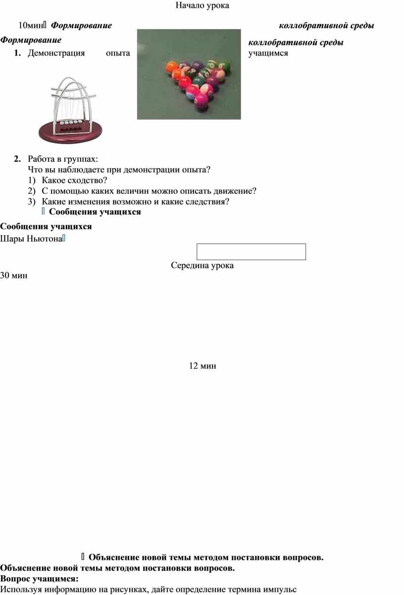 Объяснение новой темы методом постановки вопросов. Вопрос учащимся: Используя информацию на рисунках, дайте определение термина импульс