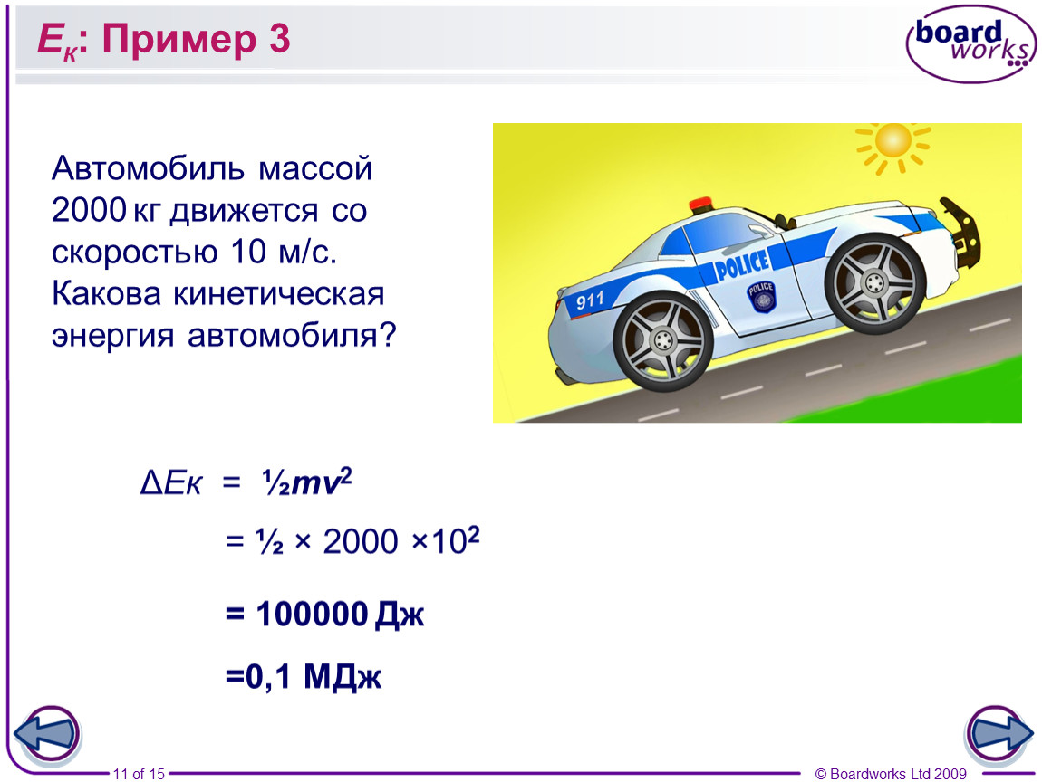 Кинетическая энергия (Ek) это энергия, которой обладает движущееся тело.