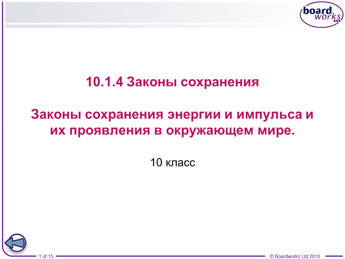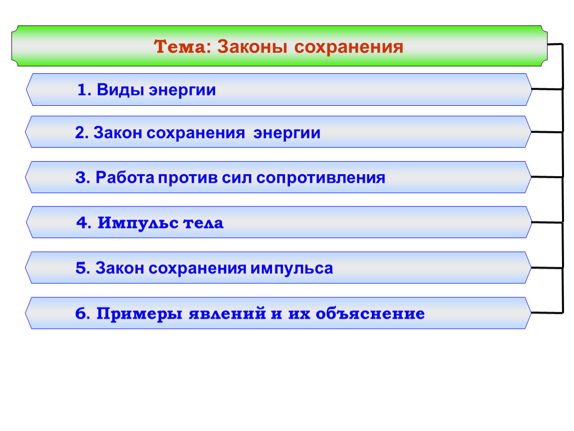 10.1.4 Законы сохранения Законы сохранения энергии и импульса и их проявления в окружающем мире.