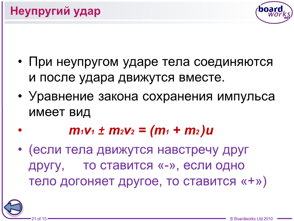Сумма импульсов тел до взаимодействия равна сумме импульсов тел после взаимодействия