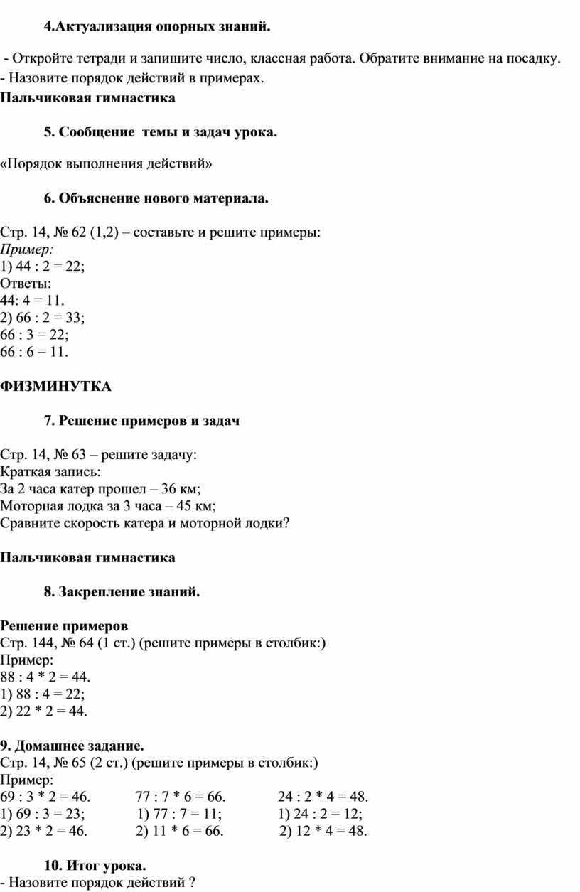Стр. 14, № 62 (1,2) – составьте и решите примеры:
