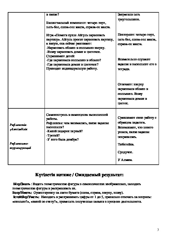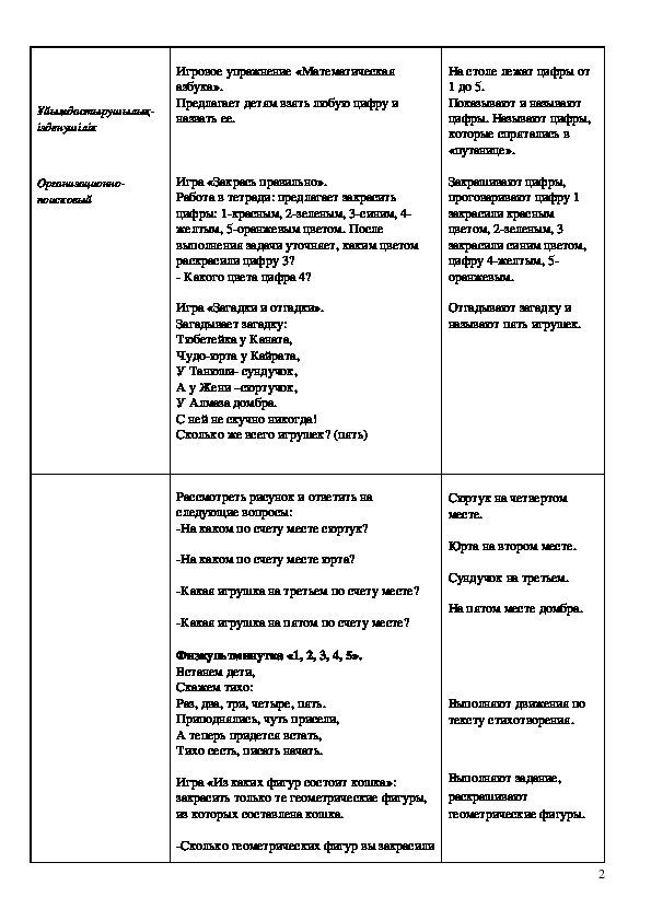 Мақсаты/Цель: Закрепить знания о цифрах от 1 до 5; продолжать учить порядковому счёту до 5,