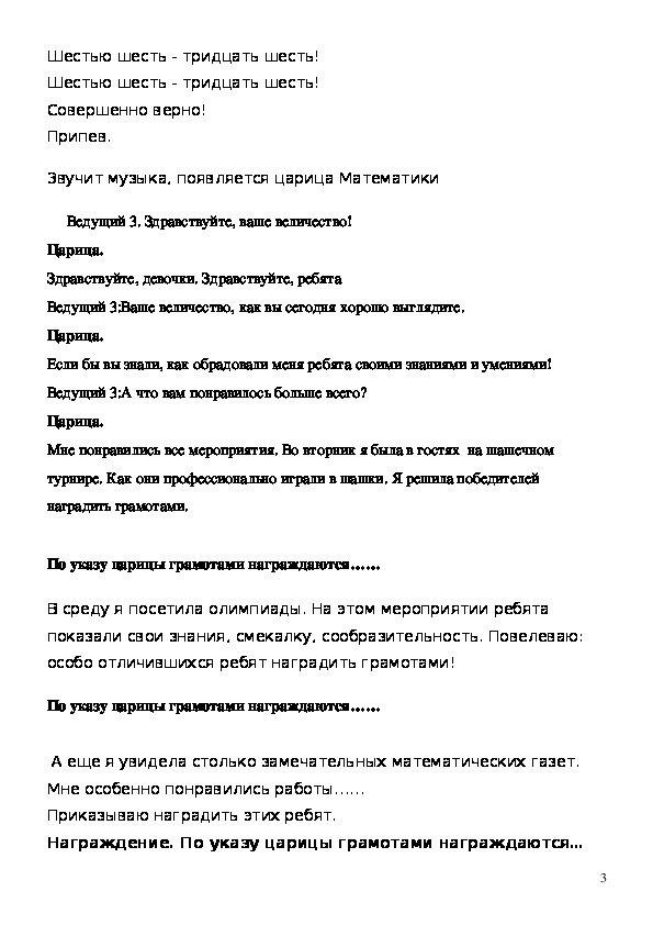 Сценарий «ЗАКРЫТИЕ НЕДЕЛИ МАТЕМАТИКИ»