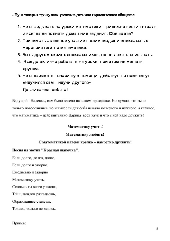 4 Ну, а теперь я прошу всех учеников дать мне торжественное обещание: