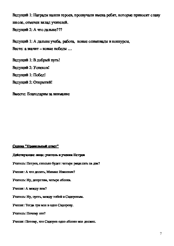 Ведущий: Надеюсь, вам было весело на нашем празднике. Но думаю, что вы не