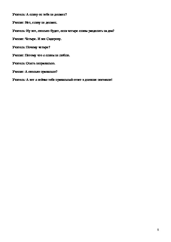 Учитель: Ну, пусть, между тобой и Сидоровым.
