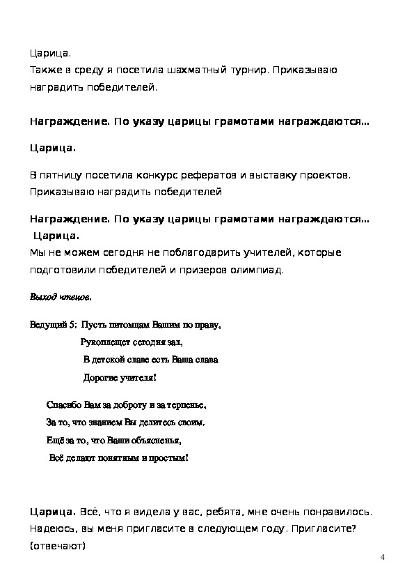 Ведущий 4. Интересно, а царице понравилось у нас.