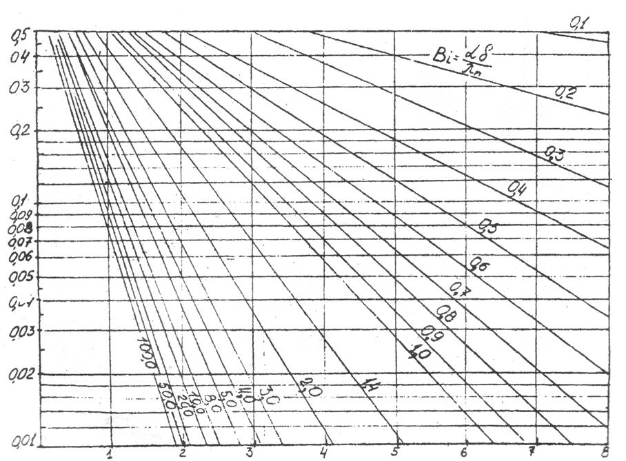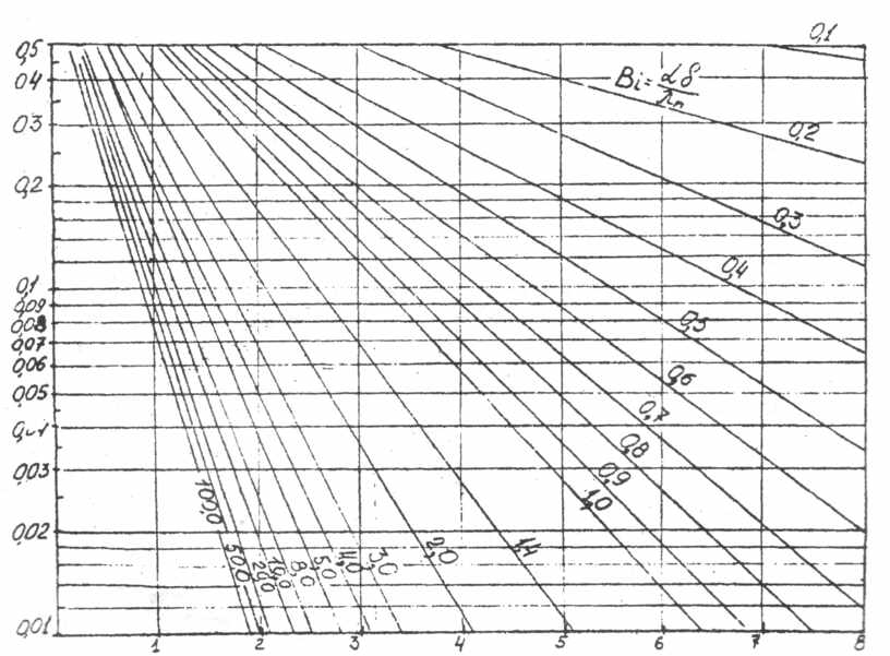 Залежність  = f (Bi, Fo) для середини пластини