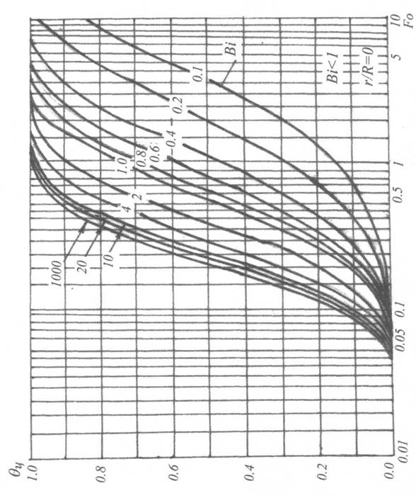 Залежність Q = f (Bi, Fo) для осі циліндра.