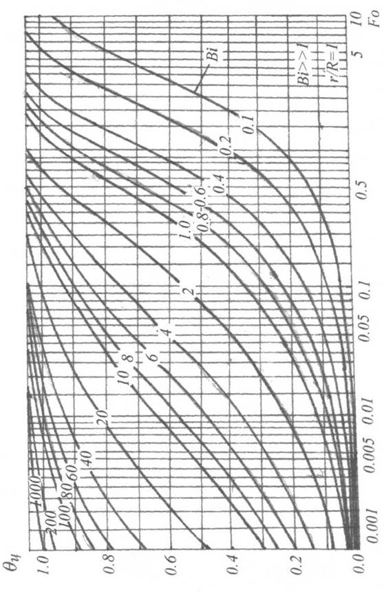 Залежність Q = f (Bi, Fo) для поверхні циліндра.