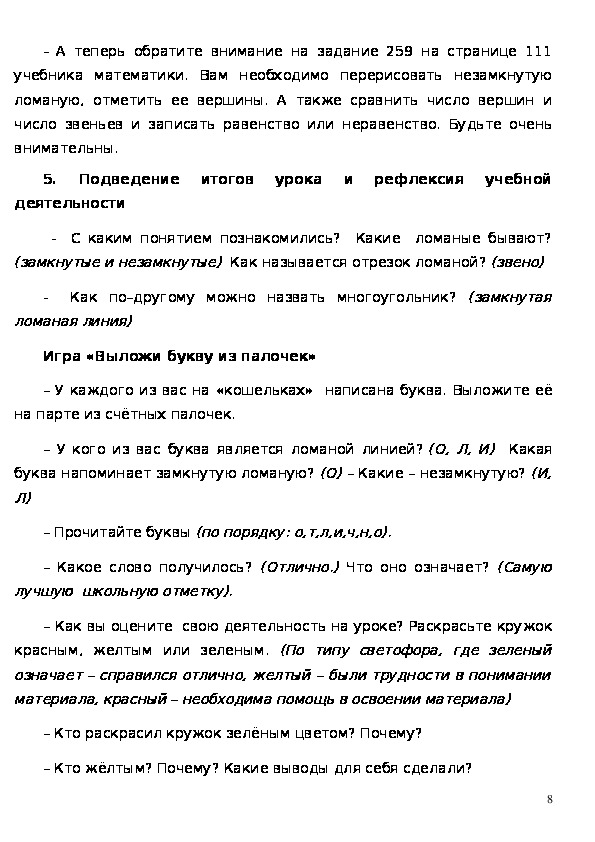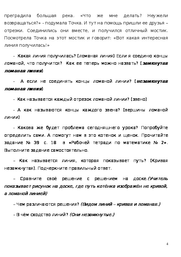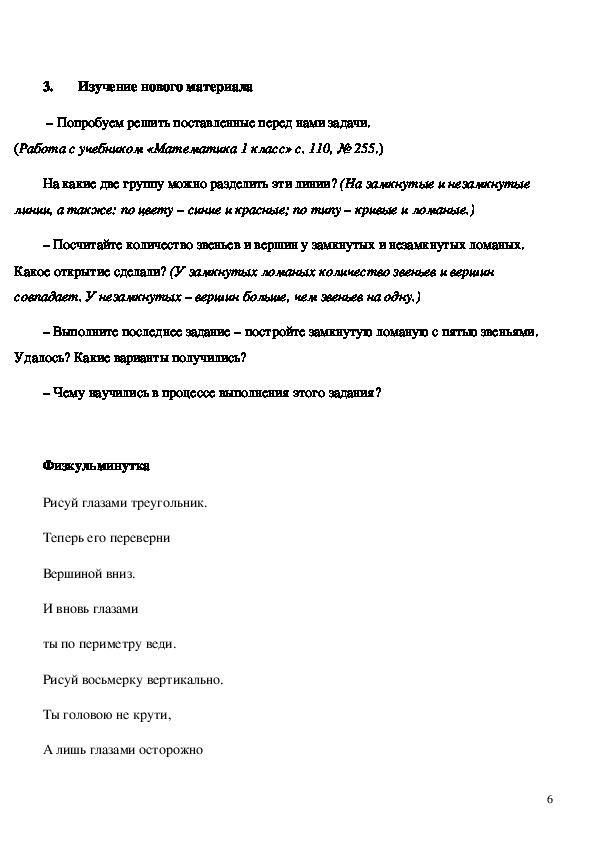 - научить определять количество и соотношение вершин и звеньев ломаной замкнутой и незамкнутой.