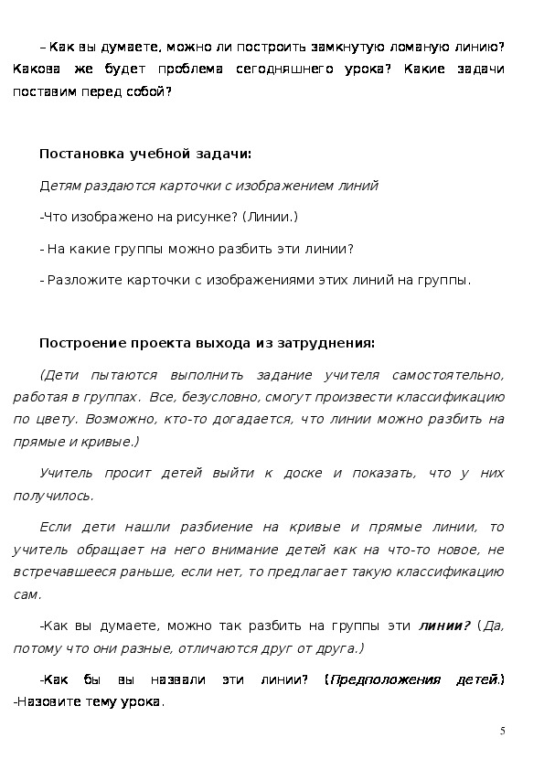 - ввести понятия «замкнутая ломаная линия», «незамкнутая ломаная линия»;