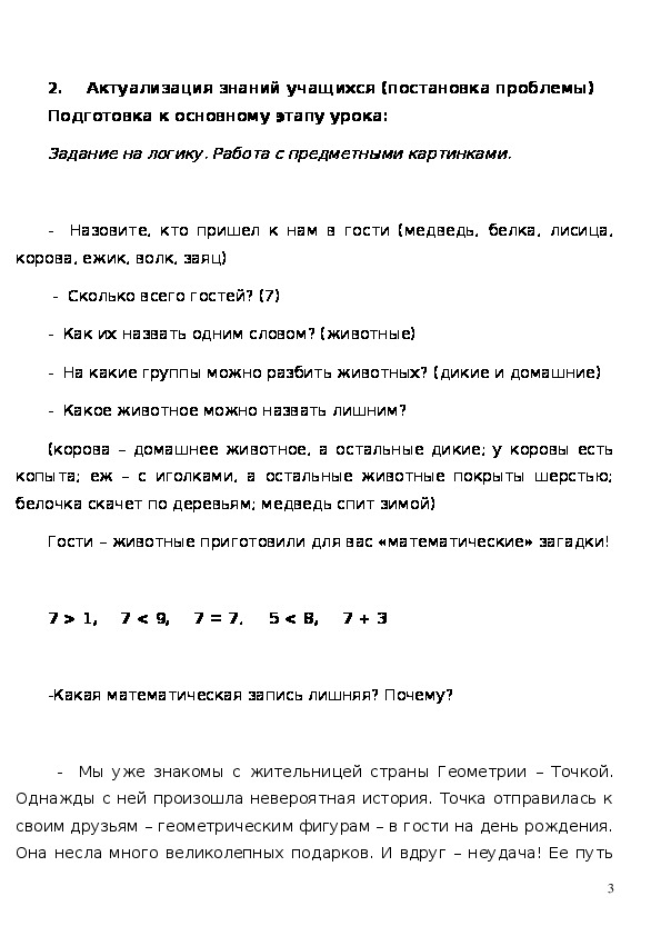 актуализация знаний, введение знаний, первичного закрепления и