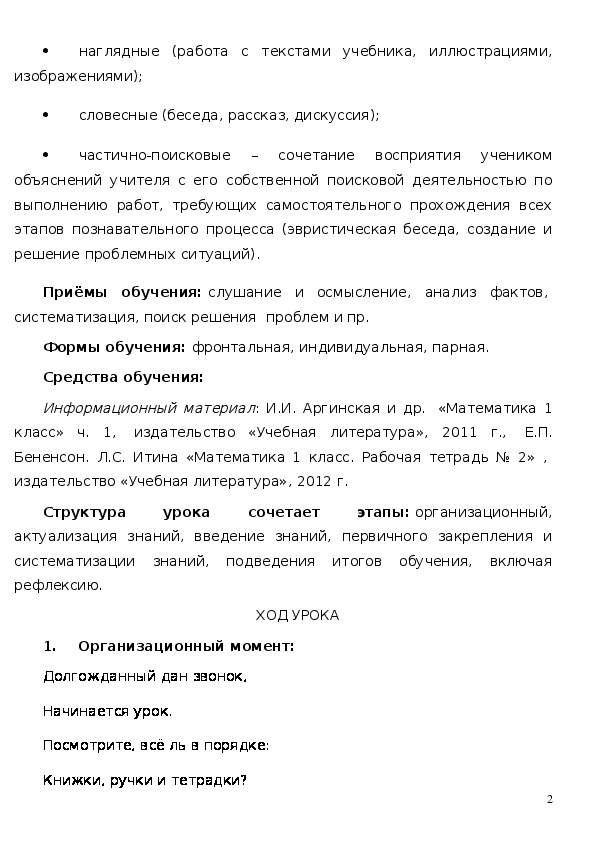 (учебник И. И. Аргинской, методика Л. В. Занкова)