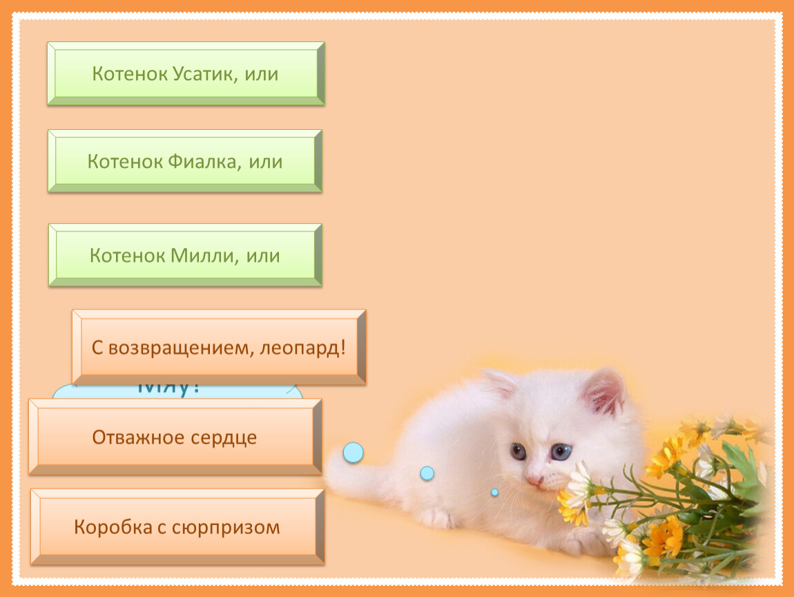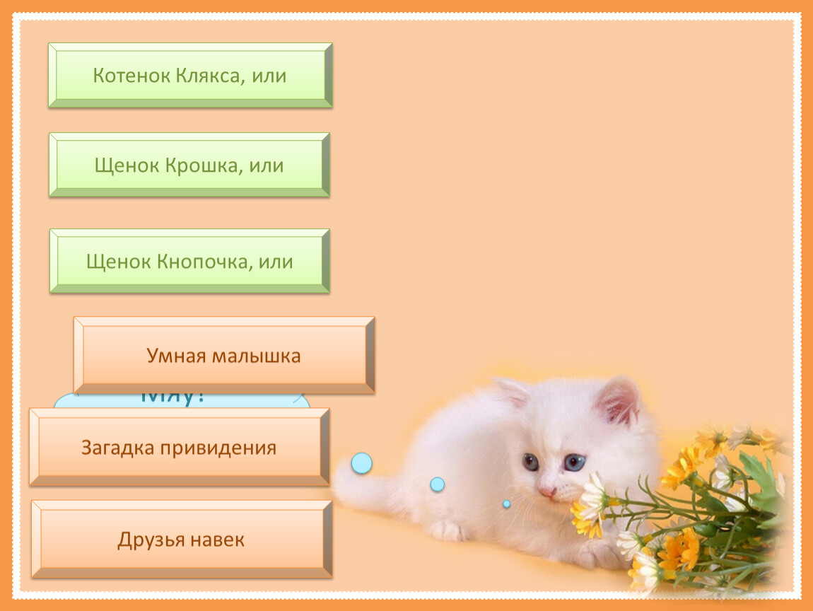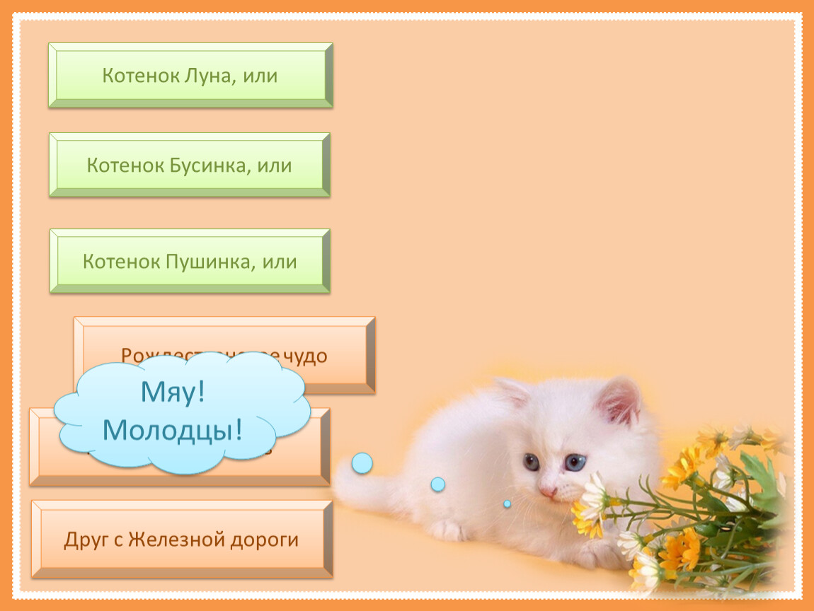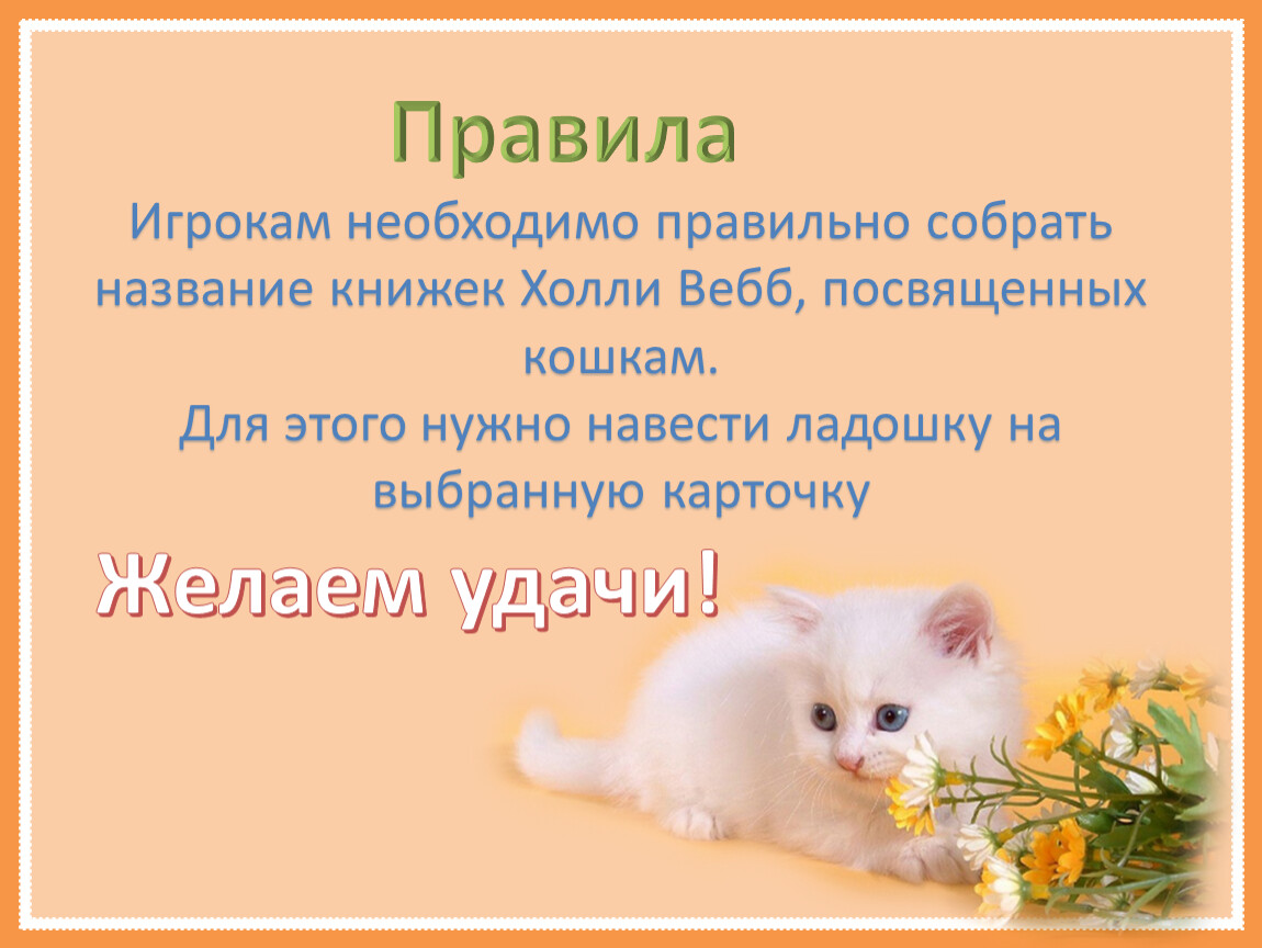 Игрокам необходимо правильно собрать название книжек Холли Вебб, посвященных кошкам.