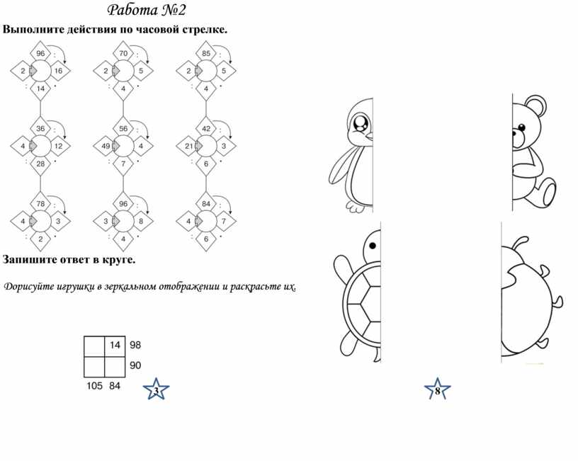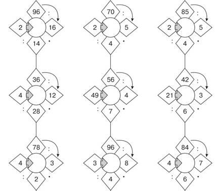 Выполните действия по часовой стрелке. Запишите ответ в круге.