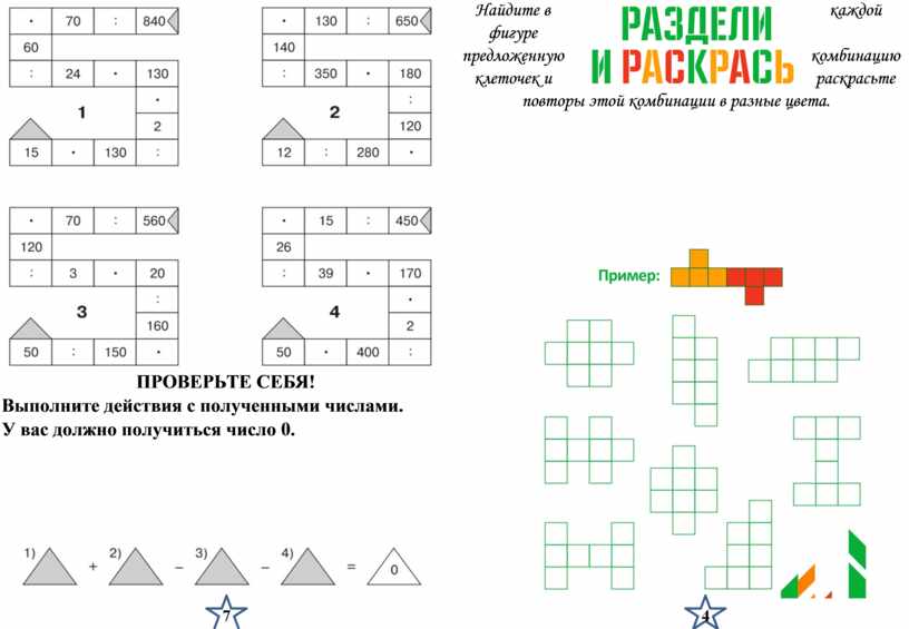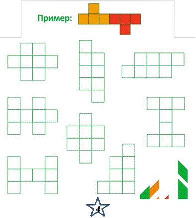 в каждой фигуре предложенную комбинацию клеточек и раскрасьте повторы этой