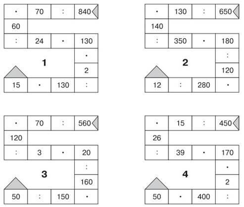 Выполните действия. Запишите ответы в закрашенных треугольниках.