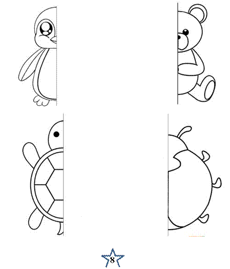 игрушки в зеркальном отображении и раскрасьте их.