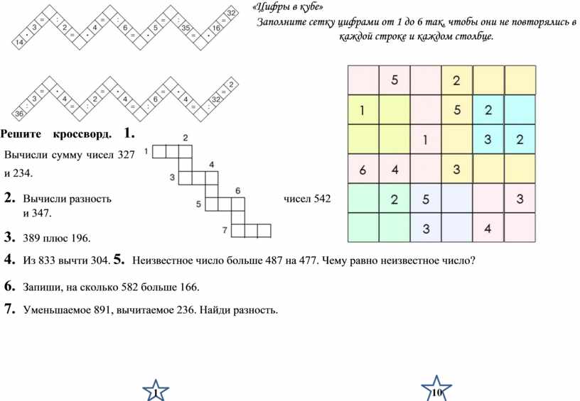 Решите кроссворд. 1. Вычисли сумму чисел 327 и 234.