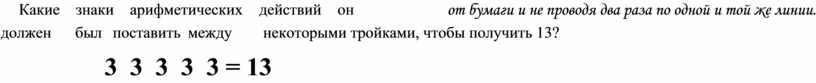 должен был поставить между некоторыми тройками, чтобы получить 13?