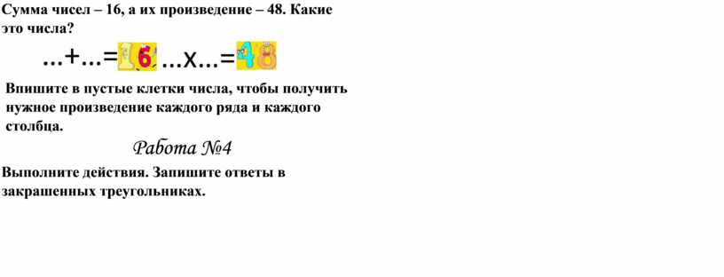 Сумма чисел – 16, а их произведение – 48. Какие это числа?