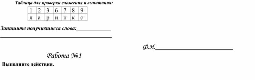 Таблица для проверки сложения и вычитания: