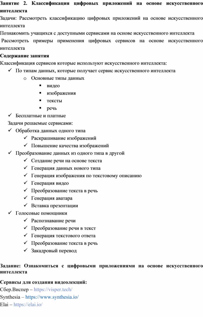 Задачи: Рассмотреть классификацию цифровых приложений на основе искусственного интеллекта