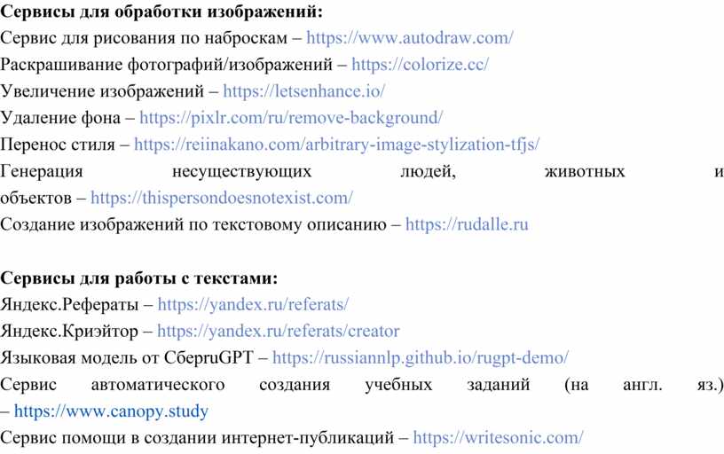 Познакомить учащихся с доступными сервисами на основе искусственного интеллекта