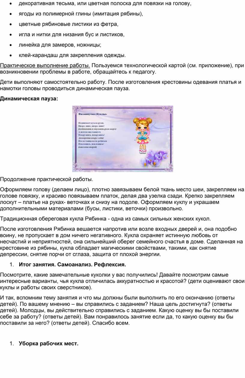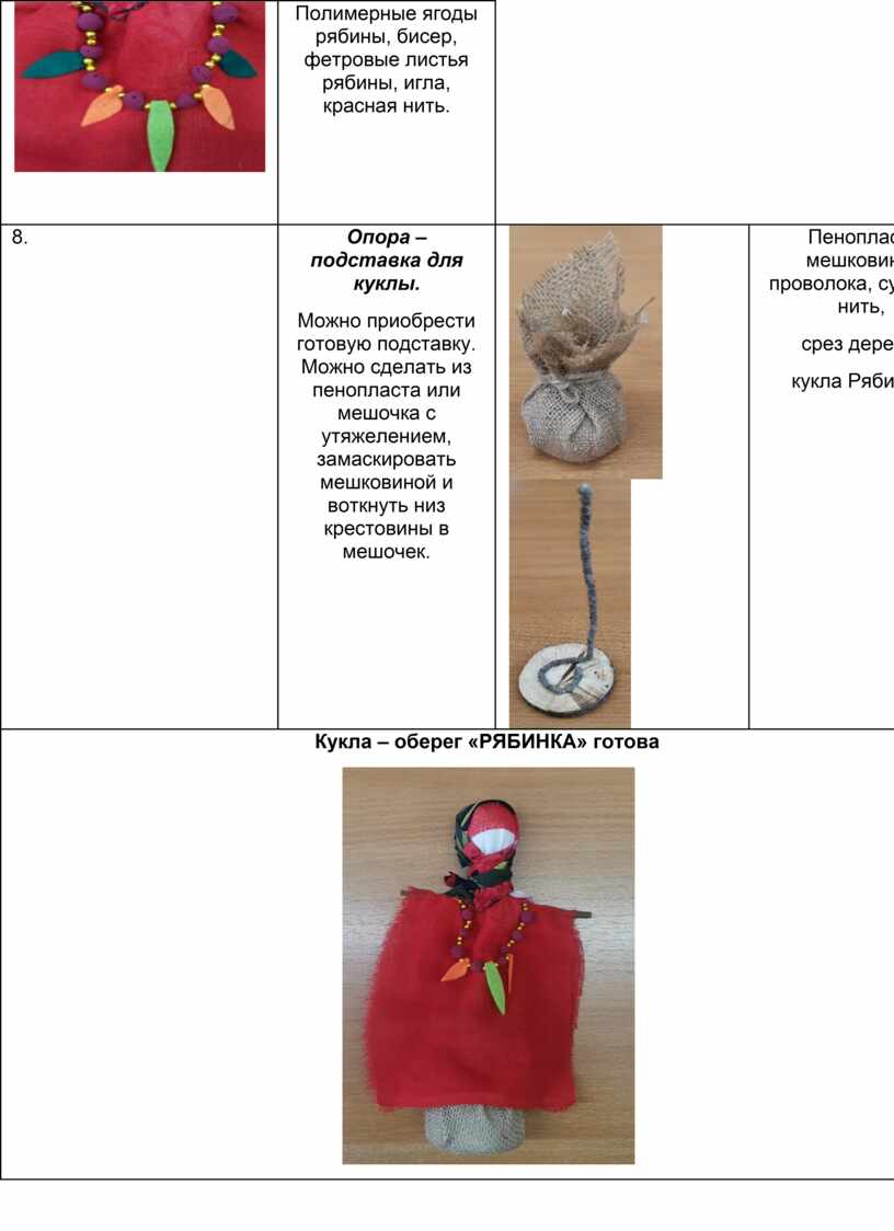 Цель: закрепление у обучающихся знаний по теме «Обрядовые куклы осеннего цикла» посредством изготовления народной куклы «Рябинка».