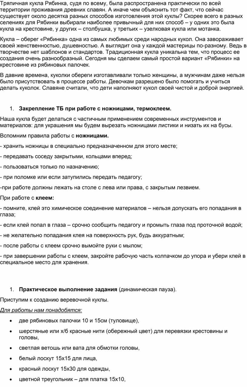 Наша задача – к концу занятия создать свою персональную куклу – оберег «Рябинку».
