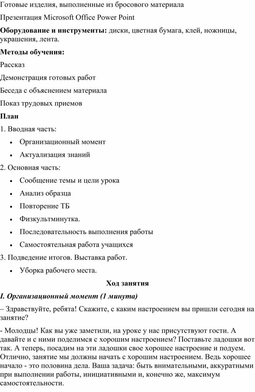· Учить организовывать рабочее место; разрабатывать виды изделий с использованием бросового материала;