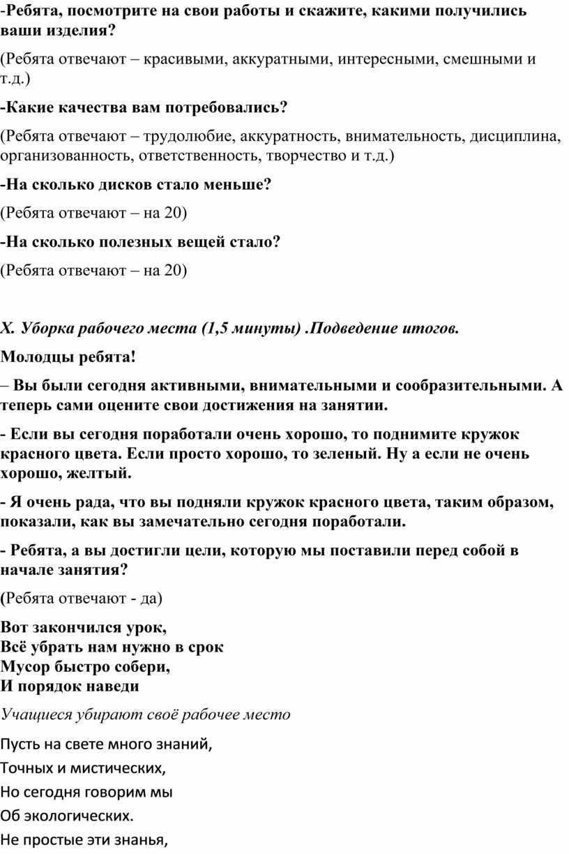 X. Уборка рабочего места (1,5 минуты) .Подведение итогов.