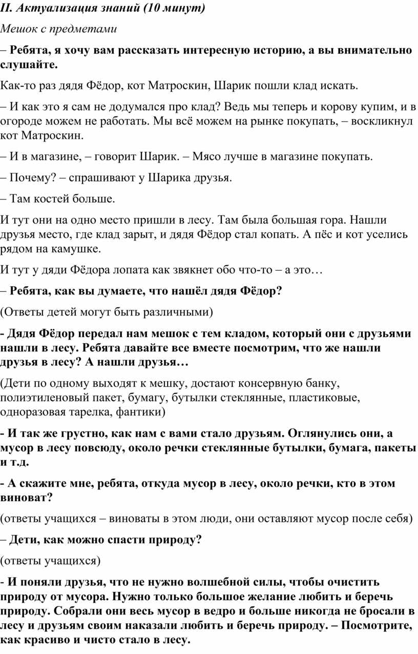- И так же грустно, как нам с вами стало друзьям. Оглянулись они, а мусор в лесу повсюду, около речки стеклянные бутылки, бумага, пакеты и т.д.