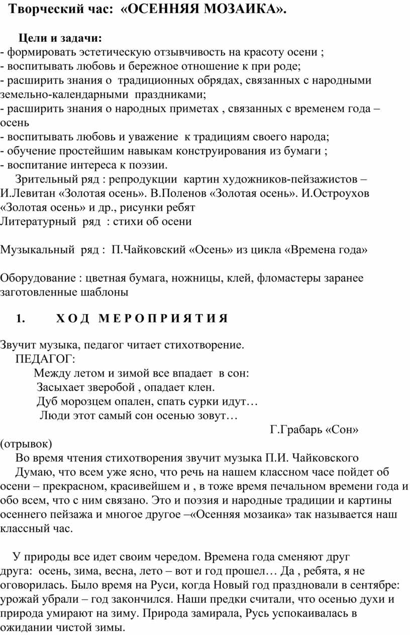 Творческий час: «ОСЕННЯЯ МОЗАИКА».